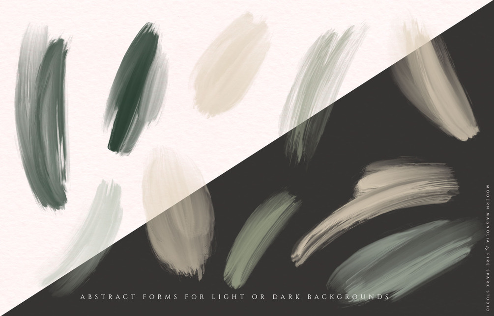 - abstract strokes work on dark or light backgrounds (see examples) and floral line art drawings are best for light backgrounds as is, but can be altered with various editing techniques